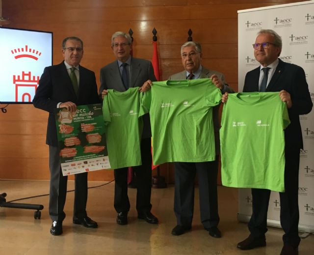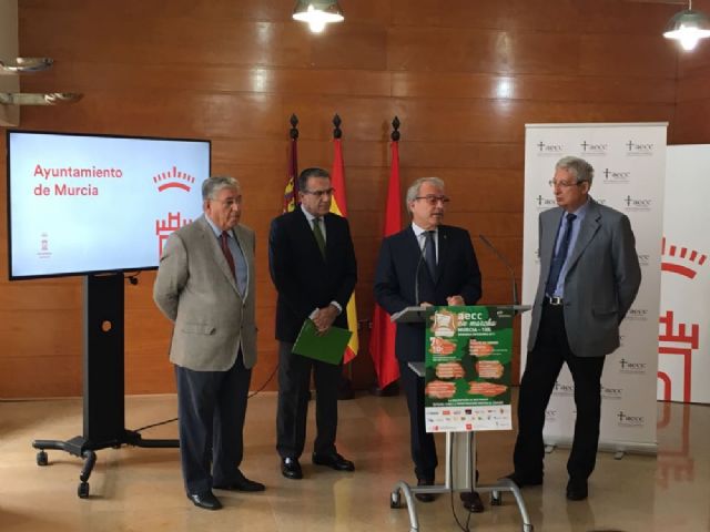 El Concejal de Deportes y Salud y el Presidente de la AECC Murcia presentan esta iniciativa, cuyo objetivo es obtener fondos para la investigación contra la enfermedad. La marcha, que podrá realizarse en patines, corriendo o caminando, comenzará a las 10 horas y en la Plaza de la Cruz Roja se instalará un área lúdica, stands informativos, zona de degustación, música en directo y paella gigante.