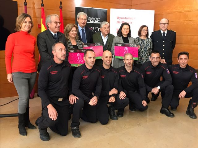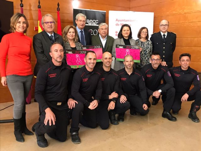 Felipe Coello, concejal de Deportes y Salud, Lola Sánchez, concejala de Tráfico, Seguridad y Protección Ciudadana, junto con la edil del Grupo Socialista, Susana Hernández, han presentado esta mañana con la presidenta de la Asociación Contra El Cáncer de Zarandona, Encarna Vidal y junto con miembros del Cuerpo de Bomberos, el calendario solidario de esta asociación para 2018 cuya recaudación irá íntegramente destinada a la investigación contra el cáncer y a la ayuda de enfermos y sus familiares.