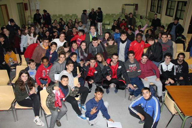 Los jugadores se han sometido a las preguntas de los alumnos de Primaria y Secundaria, y después han disputado una pachanga con los escolares de 3° y 4° de la ESO. Además, Fernando, Fede y Dário Marinovic le han hecho entrega al profesor de Educación Física de una camiseta del equipo firmada por la plantilla, a su vez sorteada entre los alumnos, y el libro 'ElPozo, 25 años de sueños'.