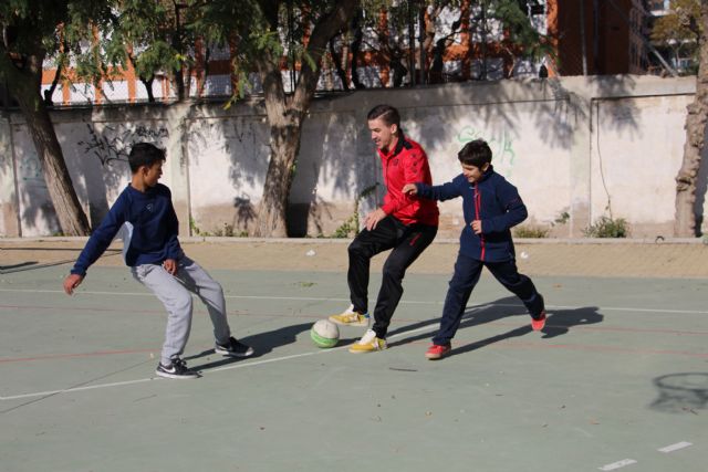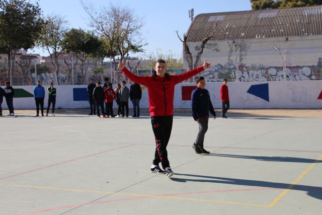 Los jugadores de ElPozo Murcia FS, Fernando, Fede y Dário Marinovic han compartido la jornada con los alumnos y alumnas de Primaria y Secundaria del IES Mariano Baquero de Murcia. Dentro de la iniciativa del Club murciano para acercarse a los escolares de la Región con el objetivo de dar a conocer el fútbol sala, y mostrarles los valores de este deporte, con los mejores embajadores que son su plantilla.