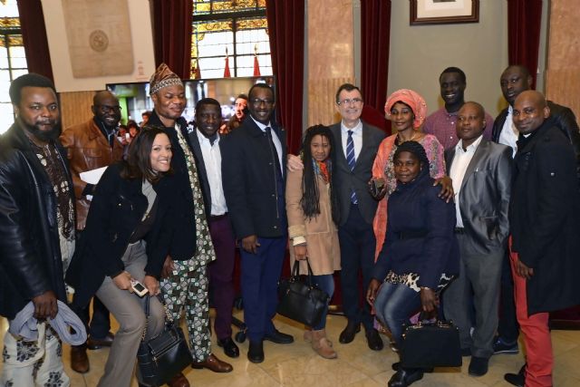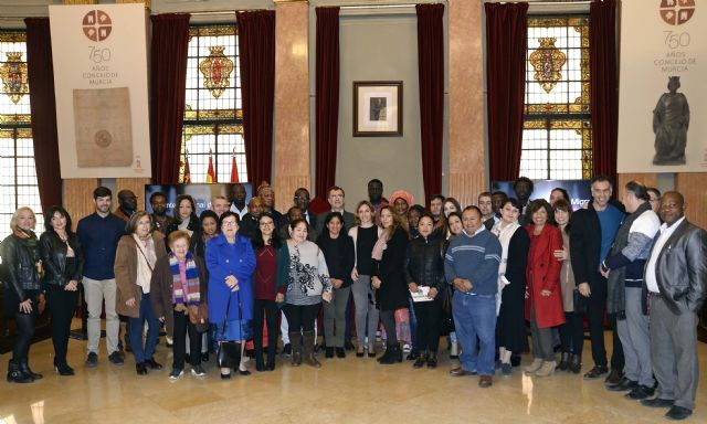El alcalde de Murcia, José Ballesta, junto a la concejal de Derechos Sociales, Conchita Ruiz, y miembros de la Corporación municipal, recibió hoy en el Salón de Plenos a los representantes de las Asociaciones de Inmigrantes residentes en el municipio de Murcia, con motivo del Día Internacional del Migrante, que se conmemoró este pasado lunes.
