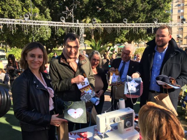 El alcalde de Murcia, José Ballesta, acompañado del concejal de Modernización de la Administración, Calidad Urbana y participación, José Guillén, y la concejala de Derechos Sociales, Conchita Ruiz, y el concejal de Deportes y Salud, Felipe Coello, han visitado esta mañana el taller de adornos navideños que Proyecto Abraham está realizando en el Gran Árbol de Navidad de la Plaza Circular.