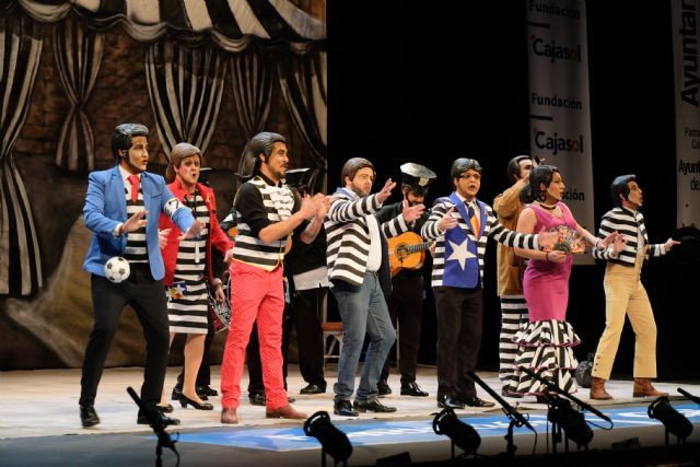 “… Con un tipo atrevido y buen nivel en sus composiciones, la agrupación murciana, repite este año en el concurso, y lo hace con uno de los temas estrella de la actualidad en este pasado año: el proceso independentista catalán y la encarcelación de sus principales líderes políticos, a los que ha juntado con otras caras conocidas de la prisión. La agrupación ha levantado los aplausos del público en varias ocasiones de su actuación, en la que han ofrecido un repertorio variado que ha ido más allá del tema catalán, como un pasodoble dedicado al humorista malagueño Chiquito de la Calzada, fallecido a finales de 2017…”