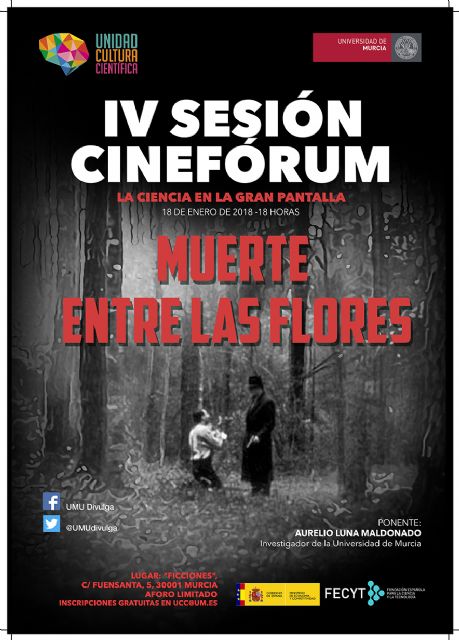 El próximo 18 de enero a las 18:00 h tendrá lugar la IV sesión del cinefórum, "La Ciencia en la gran pantalla", que organiza la Universidad de Murcia en Café de Ficciones.