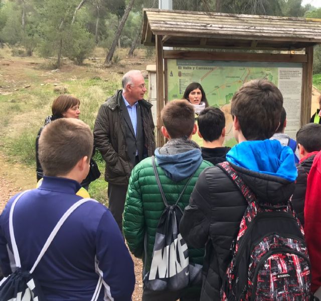 El concejal de Urbanismo, Medio Ambiente y Huerta, Antonio Navarro, ha visitado esta mañana, junto con alumnos de la ESO del centro Santa María del Carmen, parte de los casi 4 km de este itinerario circular en el que se ha podido mostrar cómo es la vegetación y la fauna de este espacio natural y disfrutar de este entorno protegido.