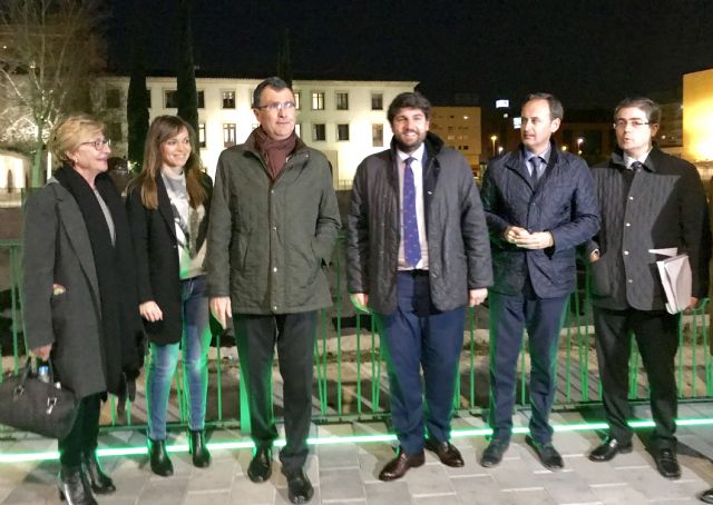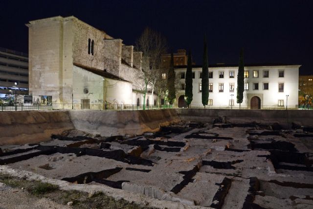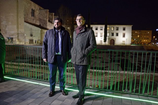 El alcalde José Ballesta y el presidente López Miras asisten al encendido de la iluminación de la Iglesia y el Palacio de San Esteban, junto con el área perimetral de todo el yacimiento. José Ballesta adelantó que "este viernes llevaremos a Junta de Gobierno la aprobación inicial del Plan Director de San Esteban, el elemento guía para toda la recuperación del yacimiento y la plaza"