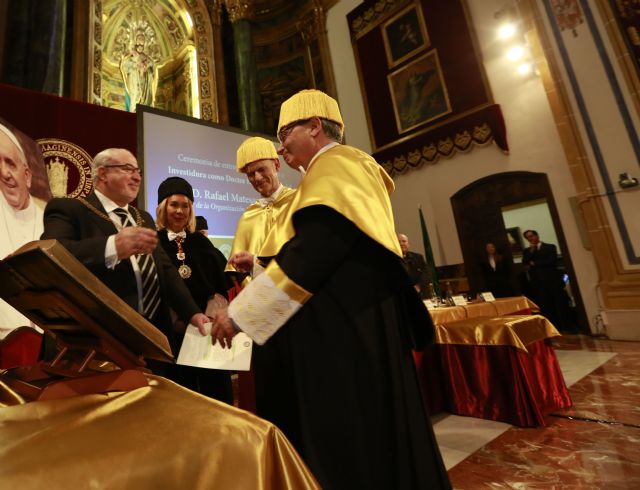 Solidaridad y altruismo. Sobre estos dos principios se basa el sistema de trasplantes de la Organización Nacional de Trasplantes (ONT), institución que ha sido galardonada con diversos premios a lo largo de su historia, y a la que países de todo el mundo acuden en busca de consejo o colaboración con un solo objetivo: mejorar la organización de la donación y el trasplantes de órganos. Estas son algunas de las ideas que ha expuesto Rafael Matesanz, fundador de la ONT en la ceremonia de investidura como Doctor Honoris Causa por la Universidad Católica de Murcia, celebrada esta mañana en el Templo del Monasterio de Los Jerónimos; acto al que han asistido numeras personalidades del ámbito de la salud, de prestigio nacional e internacional, como el equipo de trasplantes del Hospital Virgen de La Arrixaca.