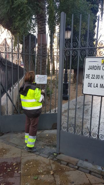 Igualmente el Servicio de Parques y Jardines, que ha cerrado al tránsito peatonal el jardín de Floridablanca, ha realizado más de 20 actuaciones en lo que va de día.