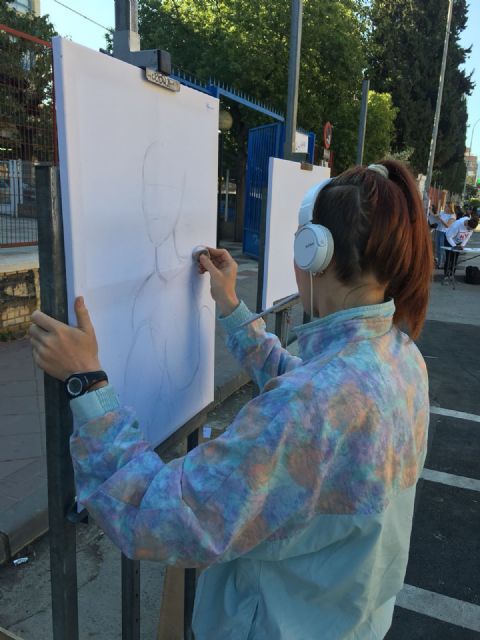 Los concejales Rebeca Pérez y Rafael Gómez han visitado esta mañana el IES Floridablanca que ha celebrado, con motivo del 20 aniversario del fallecimiento de José María Párraga y del 50 aniversario del IES Floridablanca, un concurso de pintura al aire libre dirigido a alumnos/as de 4º de ESO y Bachillerato.