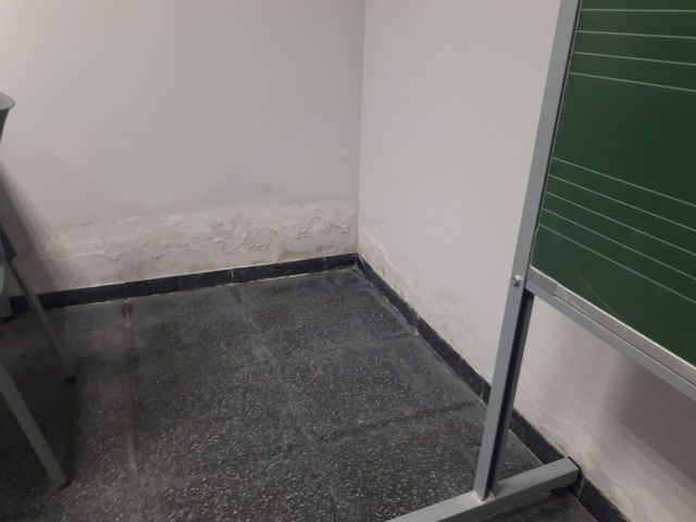 Tras visitar el centro, Margarita Guerrero y Ana Serrano, concejala y vocal de la formación, respectivamente, han denunciado que entre los problemas de la infraestructura se encuentran las numerosas goteras y humedades que afectan a gran parte de las paredes.