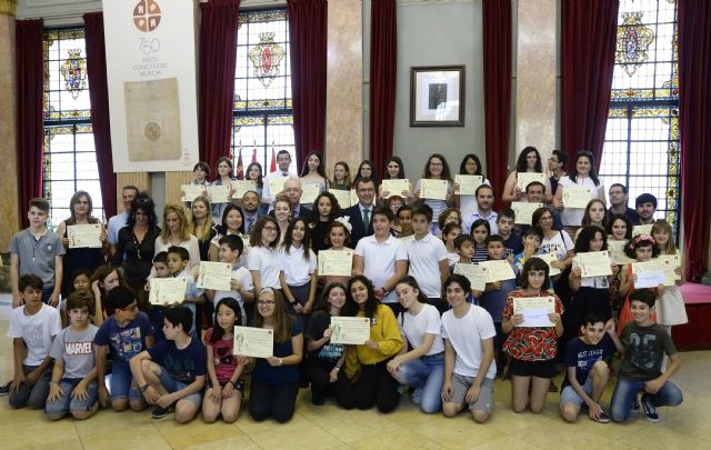 El alcalde de Murcia, José Ballesta, el concejal de Urbanismo, Medio Ambiente y Huerta, Antonio Navarro, y miembros de la Corporación municipal hicieron hoy entrega de los premios del Día Mundial del Medio Ambiente, a los escolares y centros educativos que han destacado por su compromiso con la naturaleza y la sostenibilidad, dentro de los distintos programas ambientales del Ayuntamiento, que celebra esta conmemoración bajo el lema ‘Hacia una ciudad libre de contaminación’.