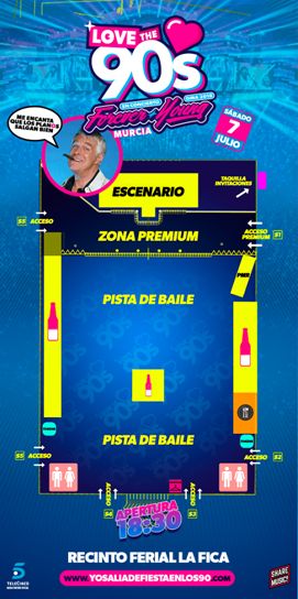 Las entradas se pueden adquirir en www.yosaliadefiestaenlos90.com/murcia, Ticketea y El Corte Inglés. Del mismo modo, habrá entradas en la taquilla del recinto, la cual se abrirá a partir de las 18 horas, mientras que la apertura de puertas se realizará a las 18.30 horas.