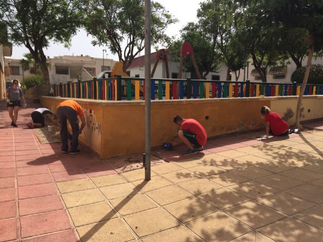El ADN Conecta de Los Garres toca a su fin con la jornada de convivencia en la que vecinos han trabajado junto con 12 operarios de servicios de limpieza y jardines en la pedanía pintando fachadas deterioradas o en mal estado a causa de pintadas vandálicas.