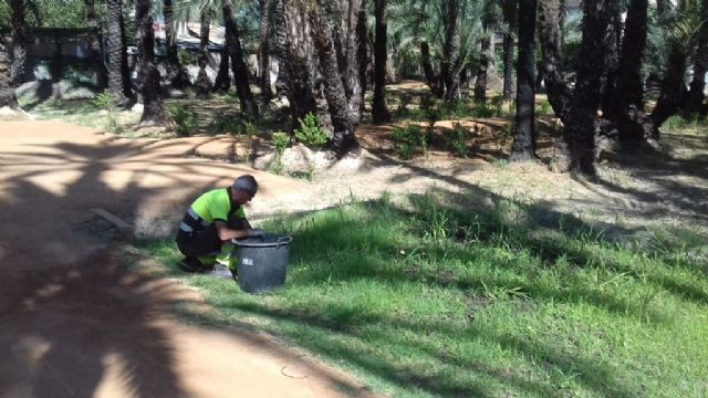 continúa trabajando en los parterres de la zona del Plano de San Francisco. Para ello, se han eliminado varios pasos sin salida que existían en la zona adoquinada pegada al Río Segura.
