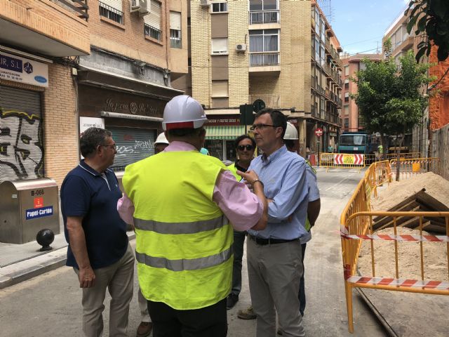 El Ayuntamiento y Aguas de Murcia están desarrollando distintas obras contempladas en su plan de actuaciones para los meses de verano. El Alcalde José Ballesta visitó los trabajos que se están ejecutando en la calle Sagasta con el fin de mejorar las redes de abastecimiento y saneamiento de la zona.
