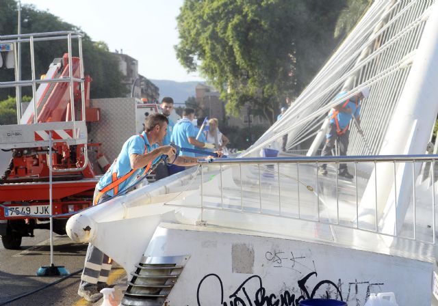 El Ayuntamiento despliega un plan de limpieza integral de los nueve puentes del Río Segura para que luzcan una mejor imagen