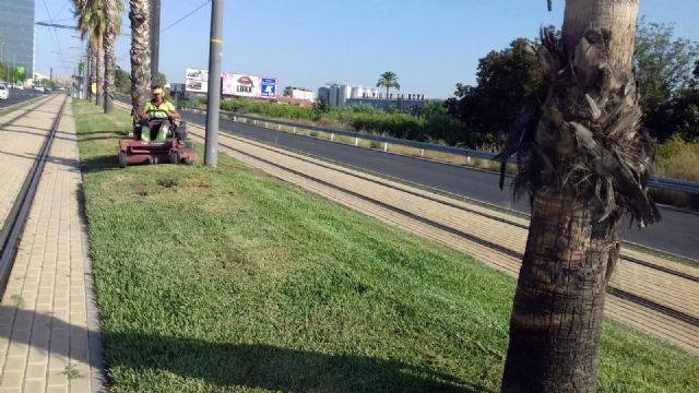 El aspecto mejorado que presentan las praderas allí existentes y que ven, a diario, miles de murcianos que usan el tranvía o pasean por las zonas verdes o la rodean con sus vehículos es ya evidente.