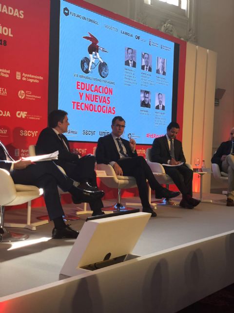 José Ballesta interviene en el foro internacional 'Futuro en Español', que se celebra en Logroño, dentro del debate sobre 'La educación digital como motor de desarrollo en España y América Latina'. El alcalde destaca "la alianza estratégica entre el Ayuntamiento y la Universidad de Murcia para impulsar nuestro proyecto de Smart City, que busca hacer de Murcia una ciudad más eficiente, pero también más libre e igualitaria".