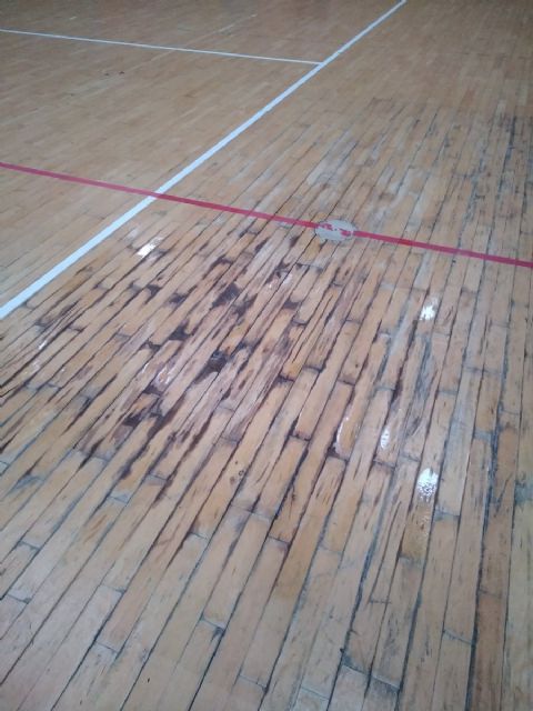 Además de las numerosas quejas que se vienen produciendo en los últimos años, que este grupo municipal ha trasladado al Concejal de Deportes en varias ocasiones, ahora se suma el paupérrimo estado del parqué de la pista auxiliar, en la que se han producido resbalones y caídas de jugadores.