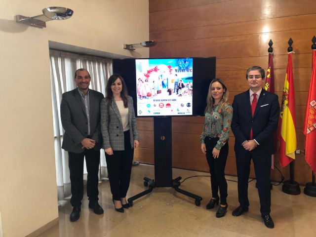 La concejala de Infraestructuras, Obras y Servicios Públicos, Rebeca Pérez y el concejal de Promoción Económica, Cultura y Programas Europeos, Jesús Pacheco, junto a Lara Fernández, directora del musical Mamma Mia, Andrés Nieto, director del IES Alfonso X El Sabio y Marién Gómez, presidenta de la Asociación ON-OFF de enfermos de Parkinson, han presentado esta mañana el musical benéfico Mamma Mia.