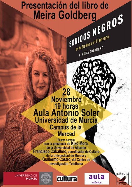 Meira Goldberg aprovechará su presencia en tierras españolas para presentar su libro Sonidos negros, y proyectar la película inédita de Leonide Massine donde aparece la mítica bailaora "La Macarrona", hasta ahora desconocida. El acto contará con la presencia de Kiko Mora de la Universidad de Alicante, Francisco Caballero, cordinador de Cultura de la Universidad de Murcia y Guillermo Castro, del centro de investigación Telethusa.  El miércoles 28 de noviembre a las 19.00 horas en el Aula Anonio Soler del Campus de la Merced.