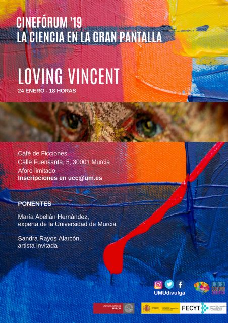 El próximo jueves, 24 de enero, a las 18:00 horas, tendrá lugar la proyección de la película 'Loving Vincent' (2017), en el Café de Ficciones de Murcia. La profesora de la UMU María Abellán Hernández y la artista invitada Sandra Rayos Alarcón presentan este largometraje sobre Van Gogh, compuesto en su totalidad por pinturas animadas al óleo.