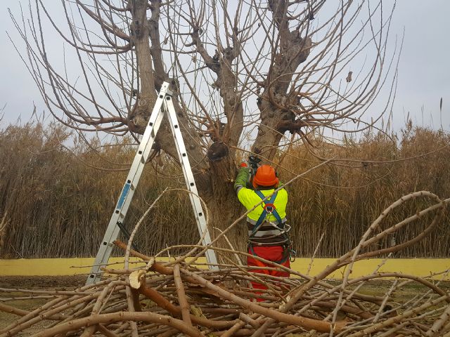 Los árboles, ubicados en casi una treintena de instalaciones deportivas del municipio de Murcia, están siendo podados, dentro de las actividades anuales que se suelen realizar.