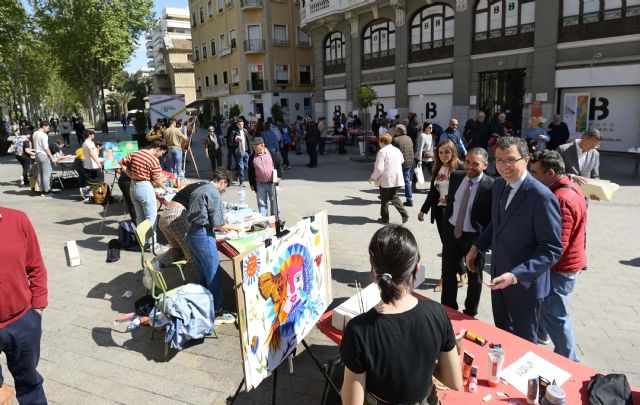 La plaza de Santo Domingo acoge el II Concurso de pintura al aire libre que conmemora 22 años sin José María Párraga, y en el que han participado cerca de un centenar de alumnos de diez institutos murcianos.