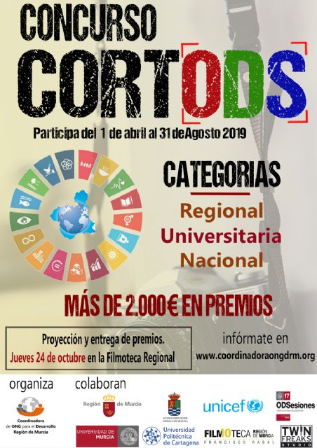 A través de este concurso de 'CortODS', la Coordinadora murciana de ONGD pretende recoger, a través de pequeños videos en formato de cortos, aquellas actitudes, iniciativas y acciones individuales o colectivas que contribuyan de forma decidida al cumplimiento de la Agenda o de dichos Objetivos y a visibilizar situaciones que denuncien el incumplimiento de alguno de estos ODS. El objetivo del concurso es que la Agenda 2030 y los ODS tengan más difusión entre la sociedad; que las personas conozcan en qué consisten, que se apropien de la Agenda y la hagan suya y, además, que intenten dar soluciones para con el cumplimiento de los 17 ODS que plantea la agenda.