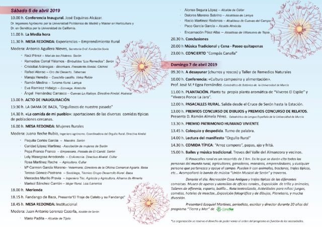Profesores de la Universidad de Murcia participan este fin de semana en las celebraciones del día del Orgullo Rural, unas jornadas que tendrán lugar en Serón, un pueblo de la sierra de Almería. Las jornadas contarán con la asistencia del ministro de Cultura, José Guirao.