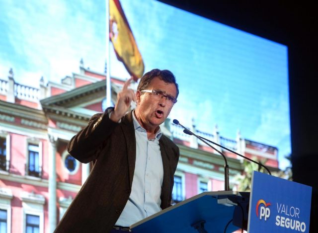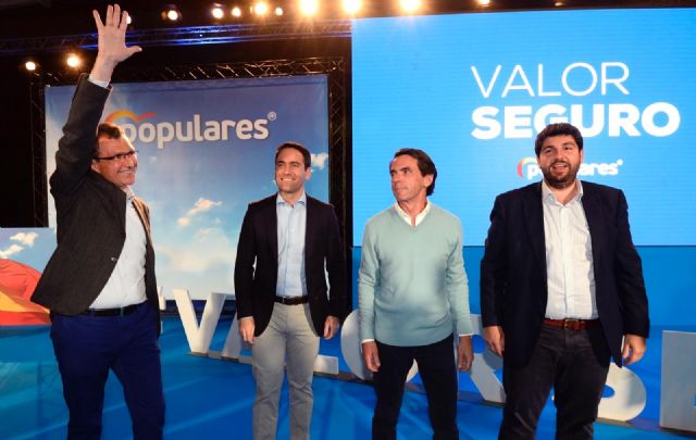 El alcalde de Murcia y candidato del Partido Popular al Ayuntamiento defendió, durante su intervención en el mitin celebrado esta tarde junto a José María Aznar, el orgullo de pertenecer a Murcia "sin complejos, sin dudas y sin titubeos".