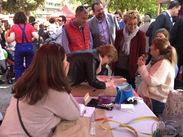La concejal de Comercio y Relaciones Institucionales, Maruja Pelegrín, y el concejal de Modernización y Desarrollo Urbano, José Guillén han visitado esta mañana la III Feria de Primavera de la asociación de comerciantes del Carmen, celebrado en el jardín de Floridablanca.