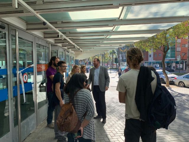 El concejal de Modernización de la Administración y Desarrollo Urbano, José Guillén, visita el taller de bioconstrucción con caña cuyo objetivo es el desarrollo de una de las instalaciones para estos días de fiestas.