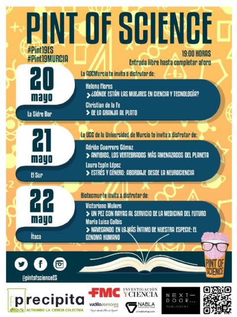 Tres bares murcianos acogerán seis charlas divulgativas con motivo del festival internacional Pint of Science que tendrá lugar los días 20, 21 y 22 de mayo, a partir de las 19 horas.