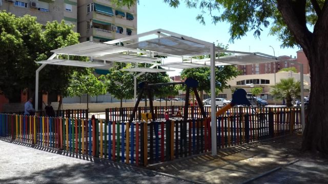 El municipio cuenta con cuatro nuevas pérgolas que dan sombra a zonas de juegos infantiles. El Servicio de Parques y Jardines, dependiente de la Concejalía de Modernización de la Administración y Desarrollo Urbano, que dirige José Guillén, ha finalizado la obra de instalación de sombraje en los parques infantiles de la calle Jorge Manrique en el Infante, de la Calle Músico Francisco Cebrián, en El Ranero y de la calle Iniestas y del Paseo de los Regulares de Melilla (Santiago y Zaraíche)