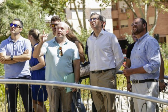 El alcalde de Murcia, José Ballesta, acompañado del concejal de Desarrollo Urbano, José Guillén, visitó el jardín de La Seda, donde presentó el Plan Especial de Verano de Parques y Jardines, el proyecto que engloba más de 100.000 actuaciones y que pondrá a punto las zonas verdes de todo el municipio antes del comienzo de la Feria de Septiembre.