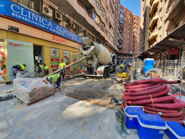 Las obras de la peatonalización de la Avenida de Alfonso X encaran su fase final. Los trabajos continúan a buen ritmo y en estos momentos se sitúan en la remodelación de una de las calles transversales a la Avenida, concretamente en la Calle Lepanto.