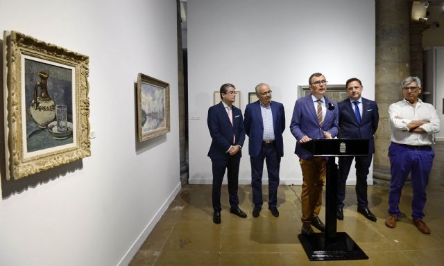El alcalde de Murcia, José Ballesta, acompañado del concejal de Cultura y Recuperación del Patrimonio, Jesús Pacheco, el presidente de la Fundación Antonio Campillo, Luis Miguel García de Andrés, el comisario de la exposición y legatario de Antonio Campillo, Juan Pérez Ferra, y el autor de los textos y libro conmemorativo de la muestra, Martín Páez, presentaron esta mañana ‘París Vivant, de Montmartre a Montparnass’, la exposición que recupera los años de inspiración colectiva y ebullición artística de París, conformada por 67 cuadros, entre los que se incluyen dos dibujos de Modigliani, así como 3 esculturas. La muestra se inaugura esta tarde, a las 20 horas, en el Palacio Almudí.