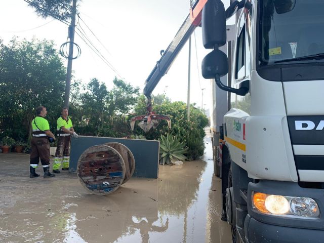 El Ayuntamiento, a través de servicios municipales, continúa con estas labores en todo el municipio. En concreto, esta pedanía ha sido una de las más afectadas, debido a la rotura que se produjo el pasado viernes en la mota del río, lo que provocó que el agua llegara hasta las viviendas dejando la localidad incomunicada.