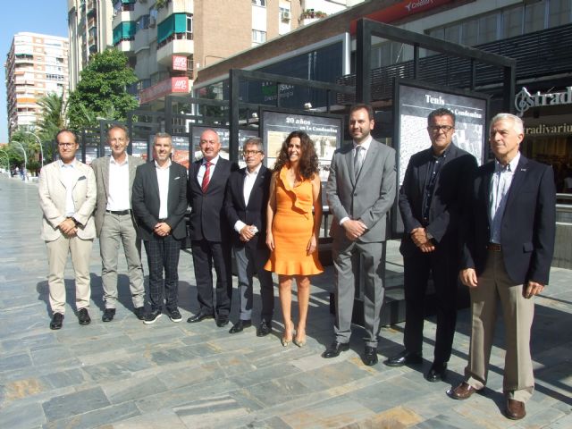 La consejera de Turismo, Juventud y Deportes, Cristina Sánchez, visitó hoy la muestra '100 años de historia', que reúne una colección con más de 20 imágenes que repasan la historia del Murcia Club de Tenis, algunas de ellas inéditas, con motivo de su centenario, y que permanecerá expuesta en la Avenida Libertad de Murcia hasta el 6 de octubre.