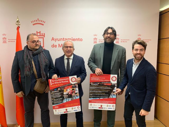 El concejal de Deportes y Salud, Felipe Coello, acompañado por el director general de Deportes, Fran Sánchez, ha presentado hoy el I Torneo de Balonmano en Silla de Ruedas Región de Murcia que se disputará el próximo fin de semana, 23 y 24 de noviembre, en Cartagena y Murcia, respectivamente.