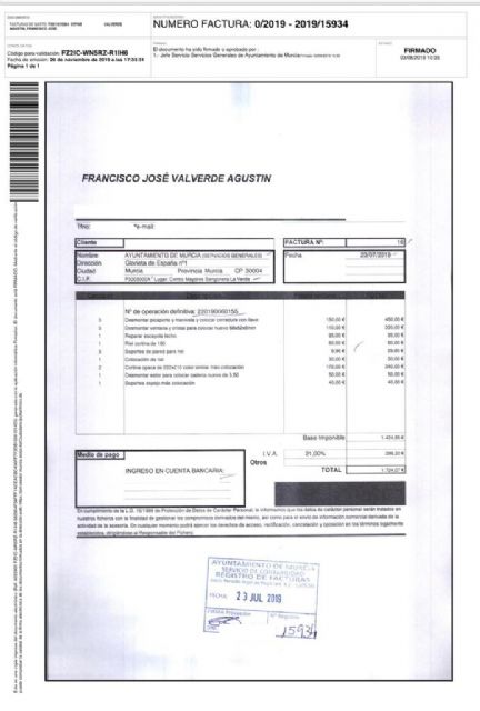Bajo el nombre falso de Antonio Ros, J.C.  ha manipulado nuevamente hoy una factura, en este caso sobre un gasto de Servicios Generales en el Centro de Mayores de Sangonera La Verde, y lo ha trasladado a los medios de comunicación y a los vecinos de la pedanía.