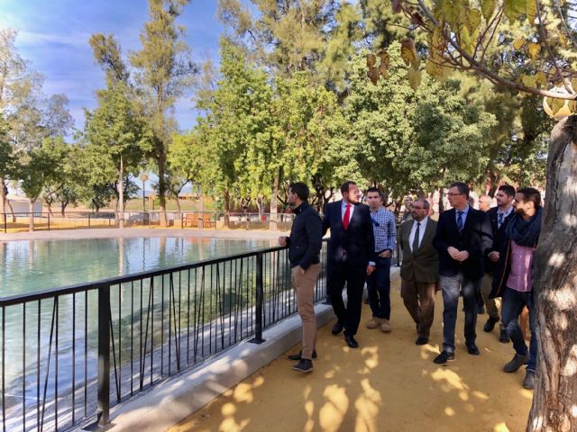 El alcalde de Murcia, José Ballesta, acompañado del concejal de Desarrollo Urbano y Modernización de la Administración, José Guillén, visitó la finalización de los trabajos que se han llevado a cabo en el parque de Los Patos, en la pedanía de San Ginés, donde los técnicos de Parques y Jardines han renovado el gran lago de 500m2, embelleciendo esta zona verde en el corazón de la pedanía, que es uno de los lugares de esparcimiento favorito de los más pequeños.