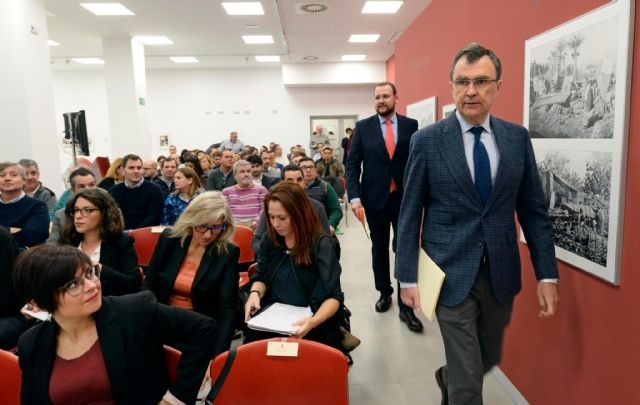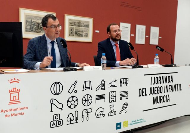 El alcalde de Murcia, José Ballesta, junto al concejal de Desarrollo Urbano y Modernización de la Administración, José Guillén, inauguró esta mañana la I Jornada del Juego Infantil de Murcia en la Sala de Exposiciones del Ayuntamiento de Murcia, donde se han dado cita un centenar de profesionales, entre técnicos municipales de Parques y Jardines, empresas del sector y expertos procedentes de distintos puntos de España, como Mallorca, Madrid, Barcelona, Galicia, Valencia y Alicante, entre otras localidades.