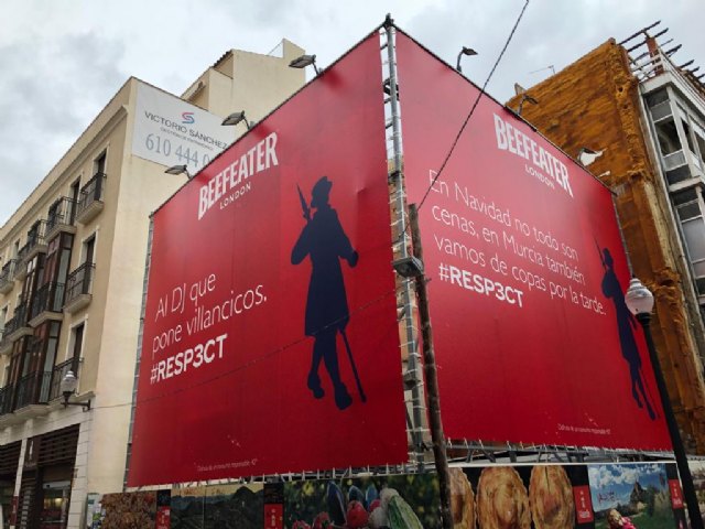 Lo hace con una gran lona que da pie a este mensaje en una localización donde cientos de murcianos disfrutan de la práctica de moda, el tardeo. La actitud de celebración que proclama Beefeater se asienta no sólo en celebrar las fiestas sino también la ciudad, escenario perfecto para disfrutar. Al DJ que pone villancicos, es otro mensaje dispuesto en la ciudad y con ganas de representar las ganas de celebrar la Navidad sea donde sea y de la forma que más prefieras.