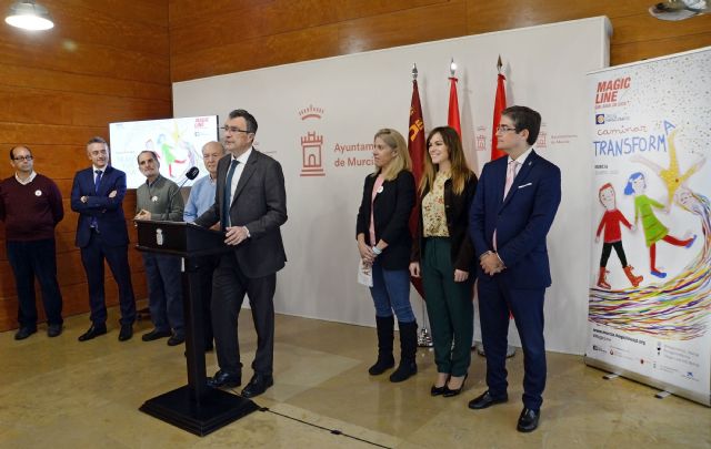 El alcalde de Murcia, José Ballesta, junto al presidente de La Fundación Jesús Abandonado, José Moreno, presentaron hoy la caminata solidaria Magic Line 2020, que tendrá lugar el domingo 26 de abril, en favor de las personas más vulnerables. Asistió también la concejal de Movilidad Sostenible y Juventud, Rebeca Pérez, y el concejal de Cultura y Recuperación del Patrimonio, Jesús Pacheco.