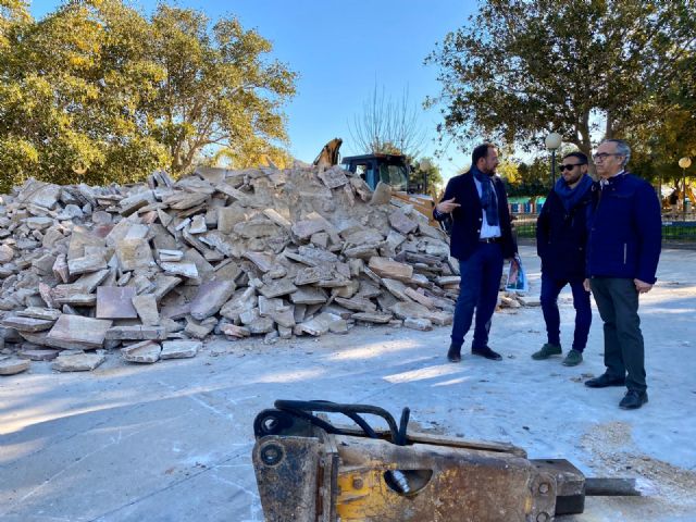 El concejal de Desarrollo Urbano y Modernización de la Administración, José Guillén, ha visitado hoy las obras de remodelación del Parque de la Libertad de la pedanía.