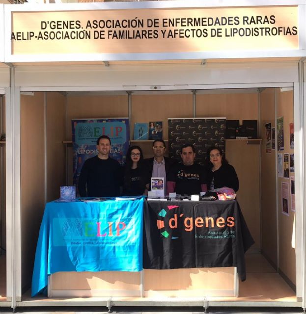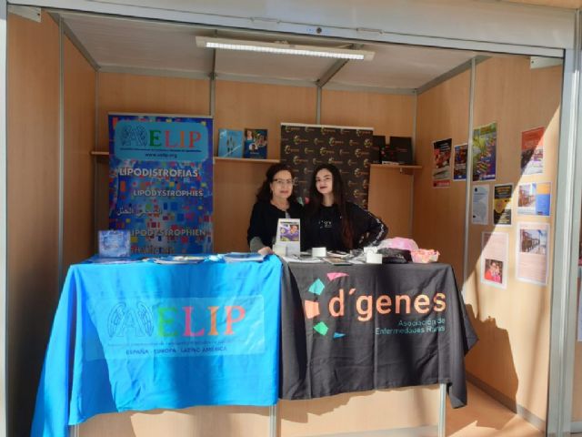 D´Genes comparte con la Asociación de Familiares y Afectados de Lipodistrofias (AELIP) uno de los expositores, desde el que voluntarios de la entidad ofrecen información sobre los fines de la misma y la labor que realizan para mejorar la calidad de vida depersonas y familias que conviven con patologías poco frecuentes. Además, en él se pueden adquirir artículos solidarios como el calendario D´Genes 2020, camisetas o pulseras solidarias.