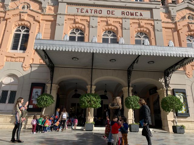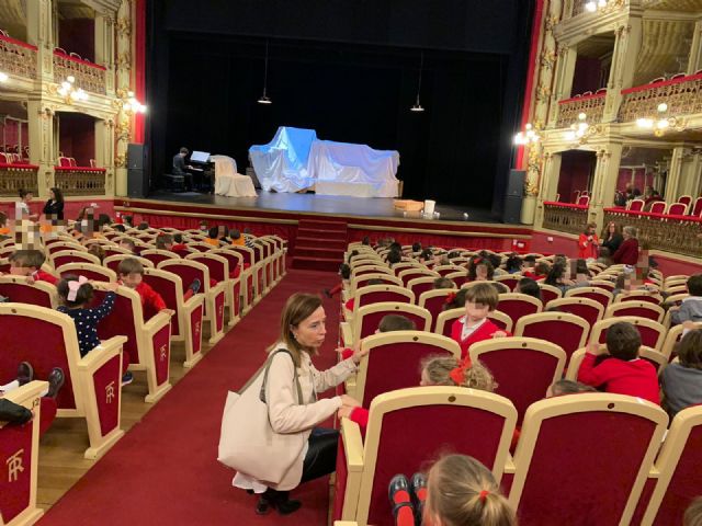 La concejala de Educación y Escuelas Infantiles, Belén López, ha visitado esta mañana a los alumnos, de entre 3 y 4 años, que han asistido a la representación de las 10.00 horas en el Teatro Romea de Murcia.