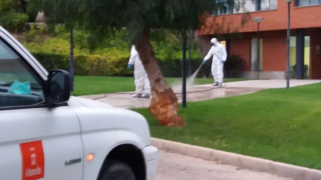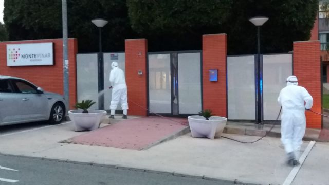 El Ayuntamiento, a través de la Concejalía de Salud y Deportes, que dirige Felipe Coello, trabaja estos días en la limpieza y desinfección de las residencias de mayores dos El Esparragal y una en la Ermita de Los Alburquerques, en Aljucer.